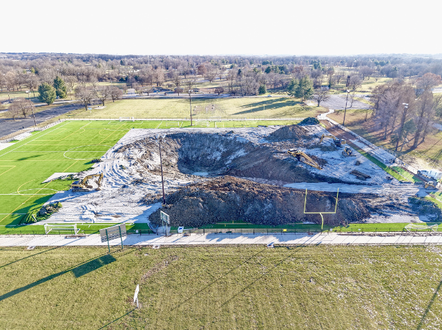 The soccer field was not in use at the time of the collapse, and no injuries were reported. Alton Mayor David Goins expressed optimism about the progress made in the drainage effort and said he looks forward to receiving SCI’s test results to guide future remediation plans.