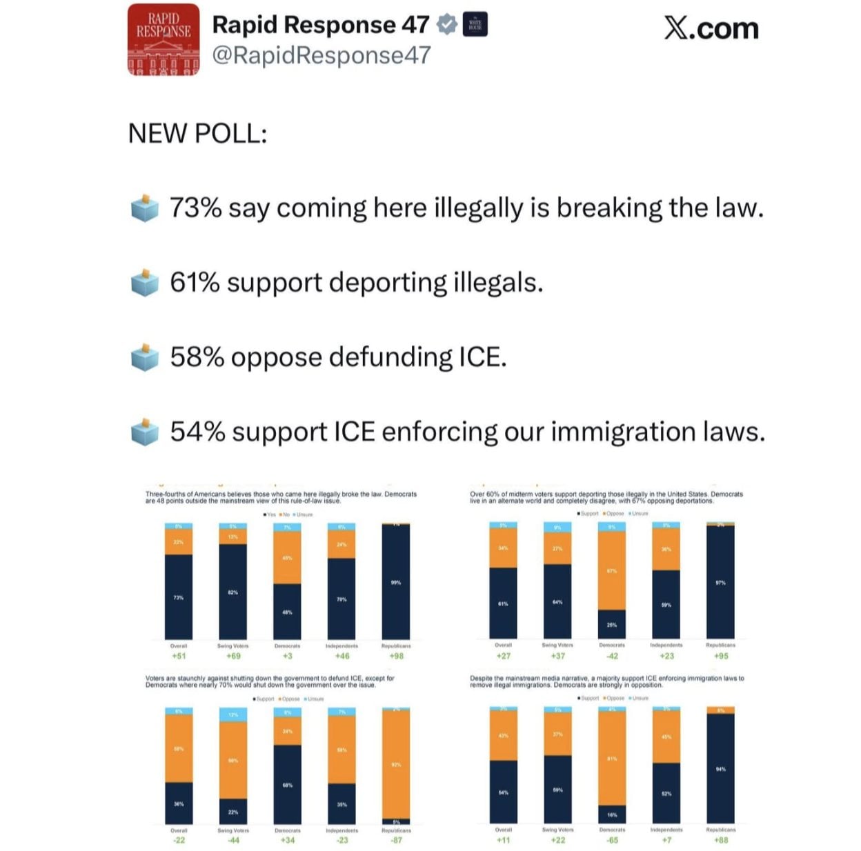 In a separate post, Miller wrote, “A strong majority of Americans support enforcing immigration laws and deporting illegal aliens.”