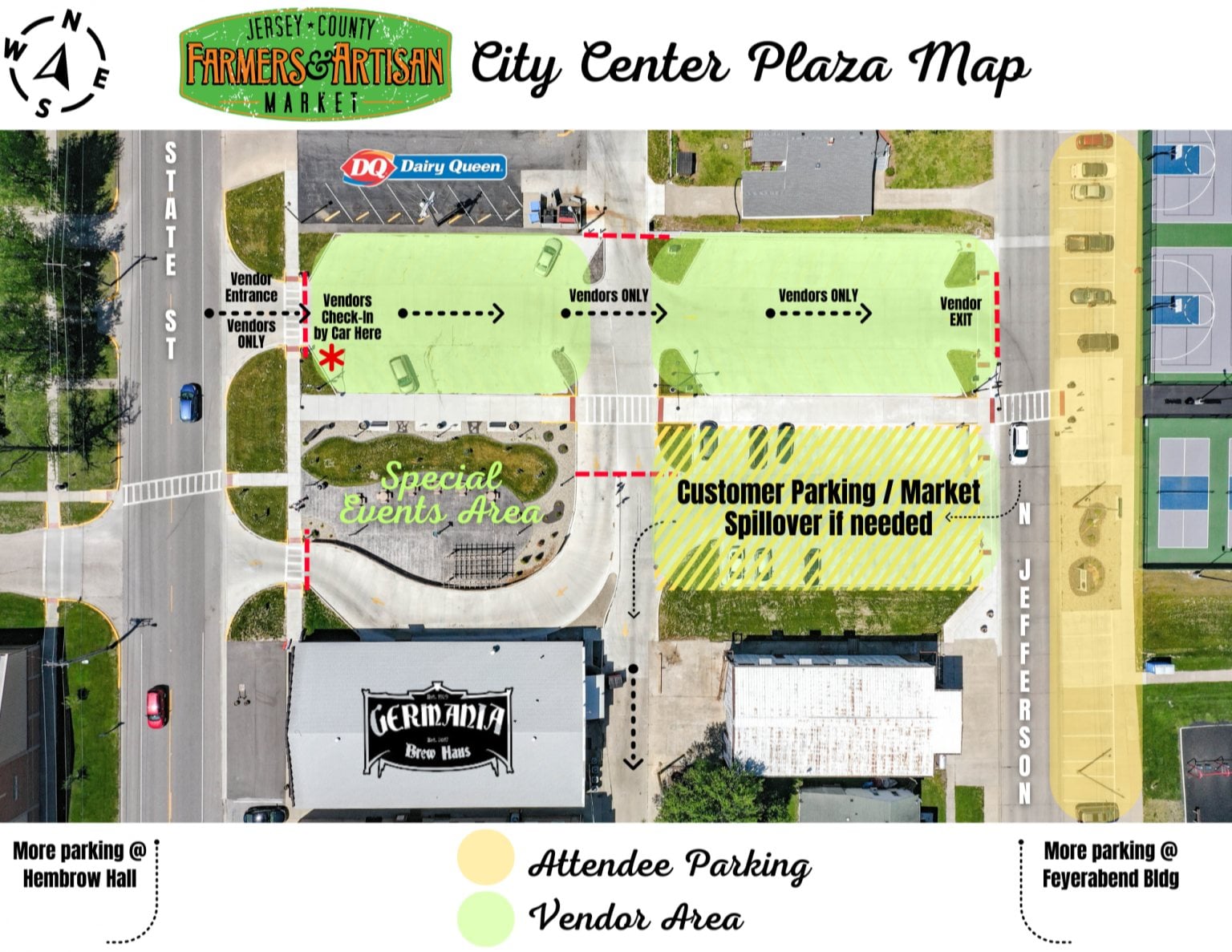 This year’s market will be held every Tuesday from June 2 to Sept. 1, 2026 from 4 to 7 p.m., excluding July 14, 2026 to accommodate the Jersey County Fair Parade. City City Plaza is located at 403 North State St. between Dairy Queen and Germania Brew Haus.