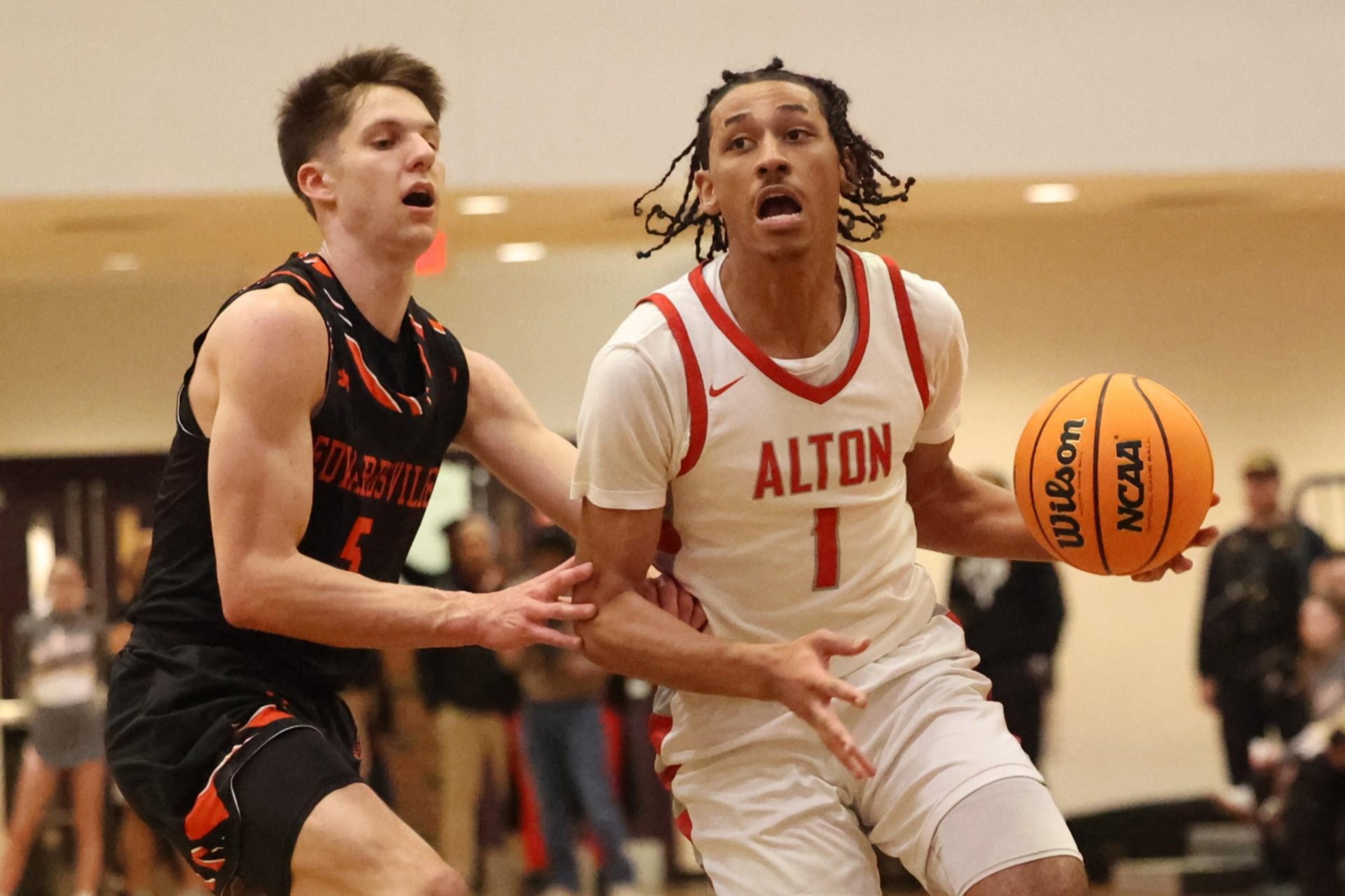 But Alton battled back with three-point plays from Howard and O’Bryant Brown as well as a basket from Keelan Lowe to cut the lead to eight, forcing Edwardsville into a timeout with just over five minutes left in regulation.