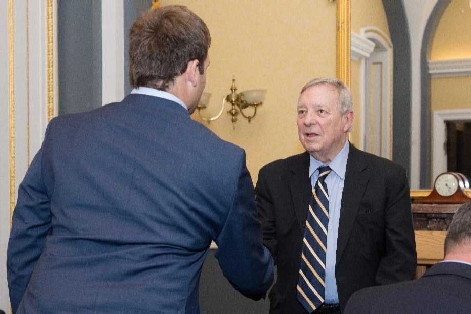 Durbin and the members of the Farm Bureau also discussed the importance of transportation infrastructure, like locks and dams, expanding markets with permanent E15, more agricultural research, and preserving trade agreements with Canada and Mexico. They also discussed the disruptions and delays of the traditional five-year Farm Bill process in the current Congress that has left farmers waiting for a decision.