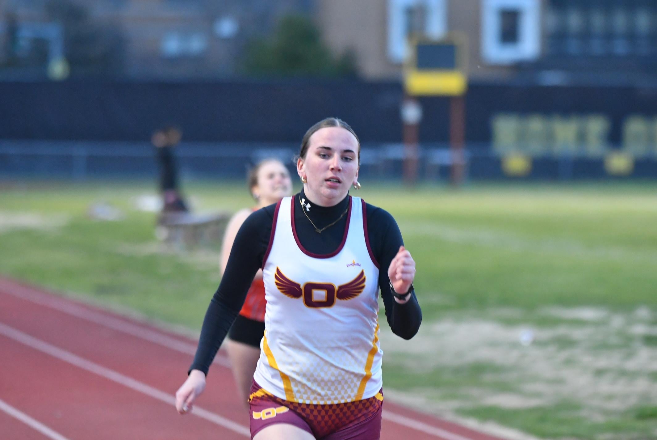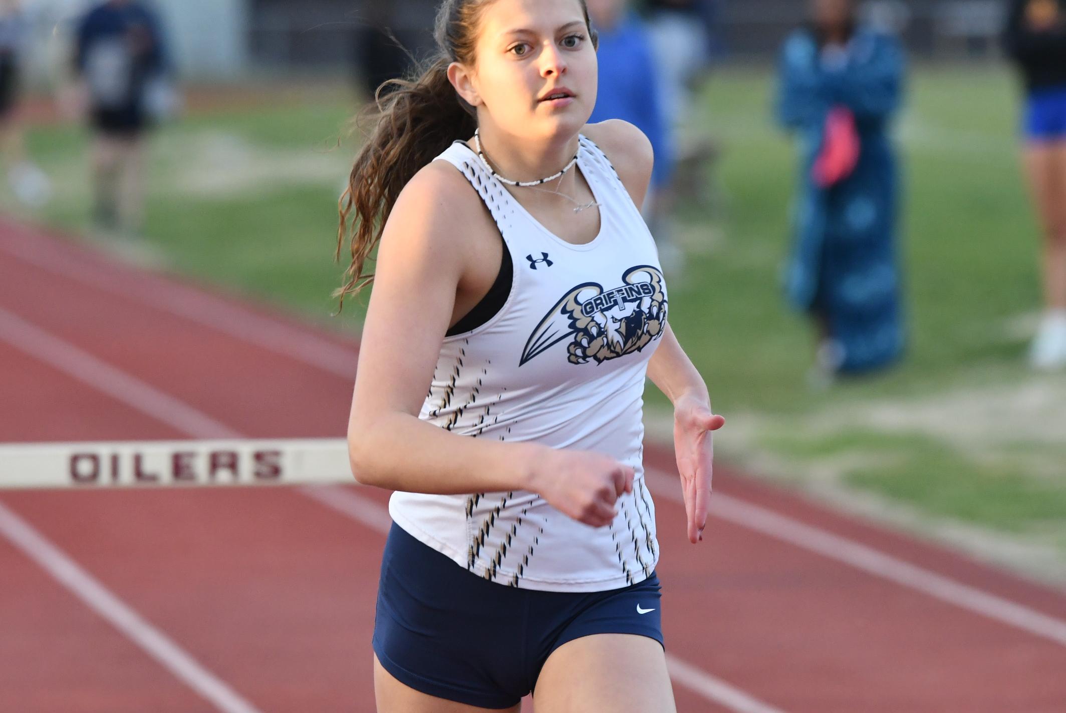 Bella Redenius, of Father McGivney, had a spectacular performance, winning the 800 (2:40.8) and 1,600 (6:03.1).