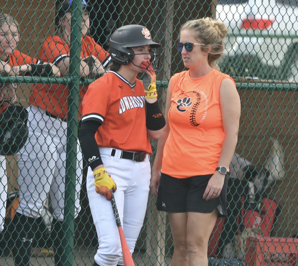Edwardsville retaliated with three in the bottom of the frame, starting when Bryar Ellinger was hit by a pitch, and went to second on Amelia Wilfong's scratch single to short. Brooke Burris doubled over the center fielder's head to score Ellinger and tie the game 1-1. Lily Stone hit a sacrifice fly to right, with Wilfong tagging up and scoring to give Edwardsville a 2-1 lead. De La Torre Cruz then singled home Burris to up the Tigers' lead to 3-1.