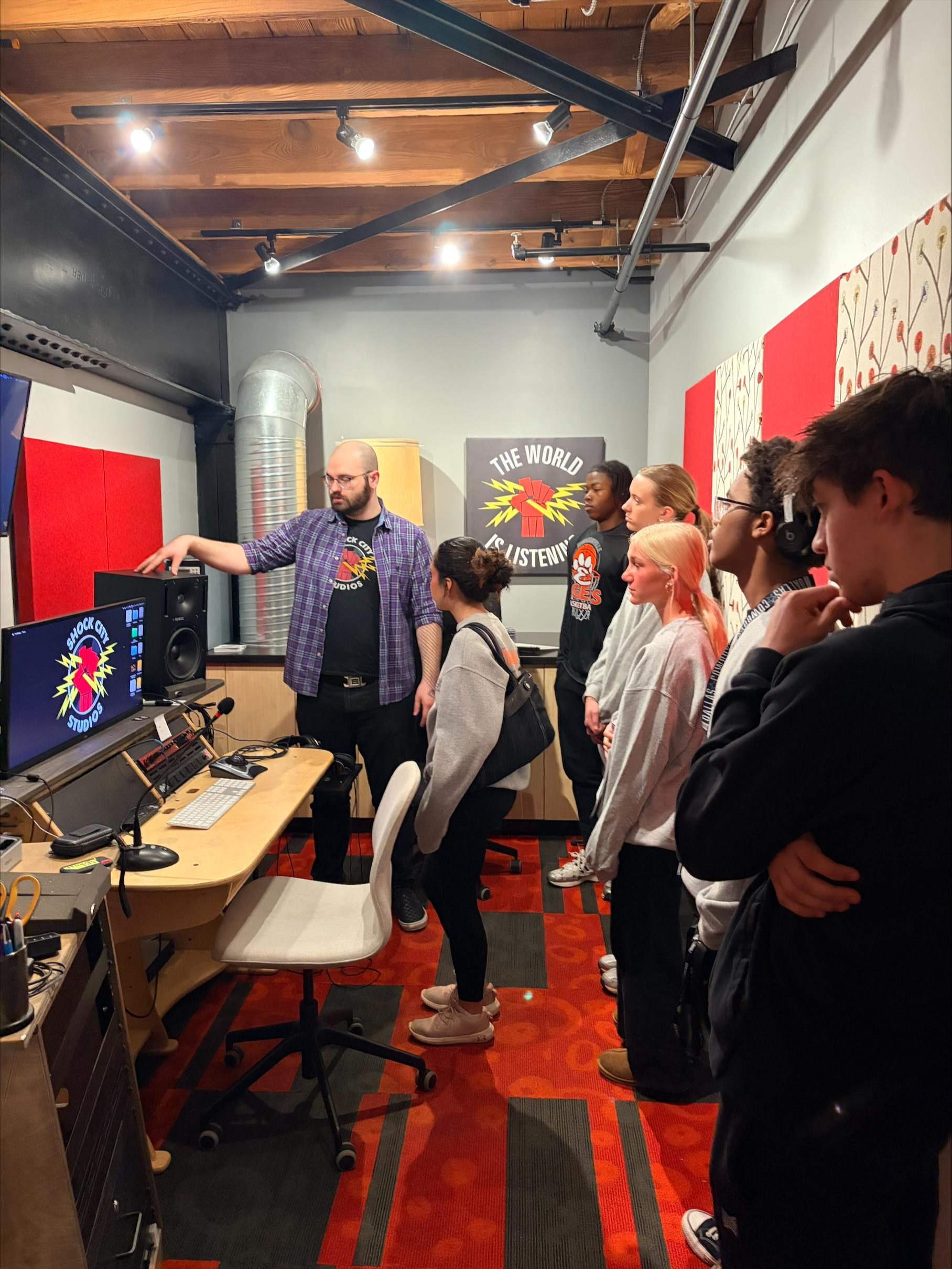 EDWARDSVILLE - The Edwardsville High School Tiger Talk Podcast Network recently visited Shock City Studios in St. Louis for a personal tour of their professional recording studio, along with an informational session led by Studio Manager Jonathan Shaver. For students who spend hours behind the microphone, this was a chance to see what storytelling looks like at the highest level.