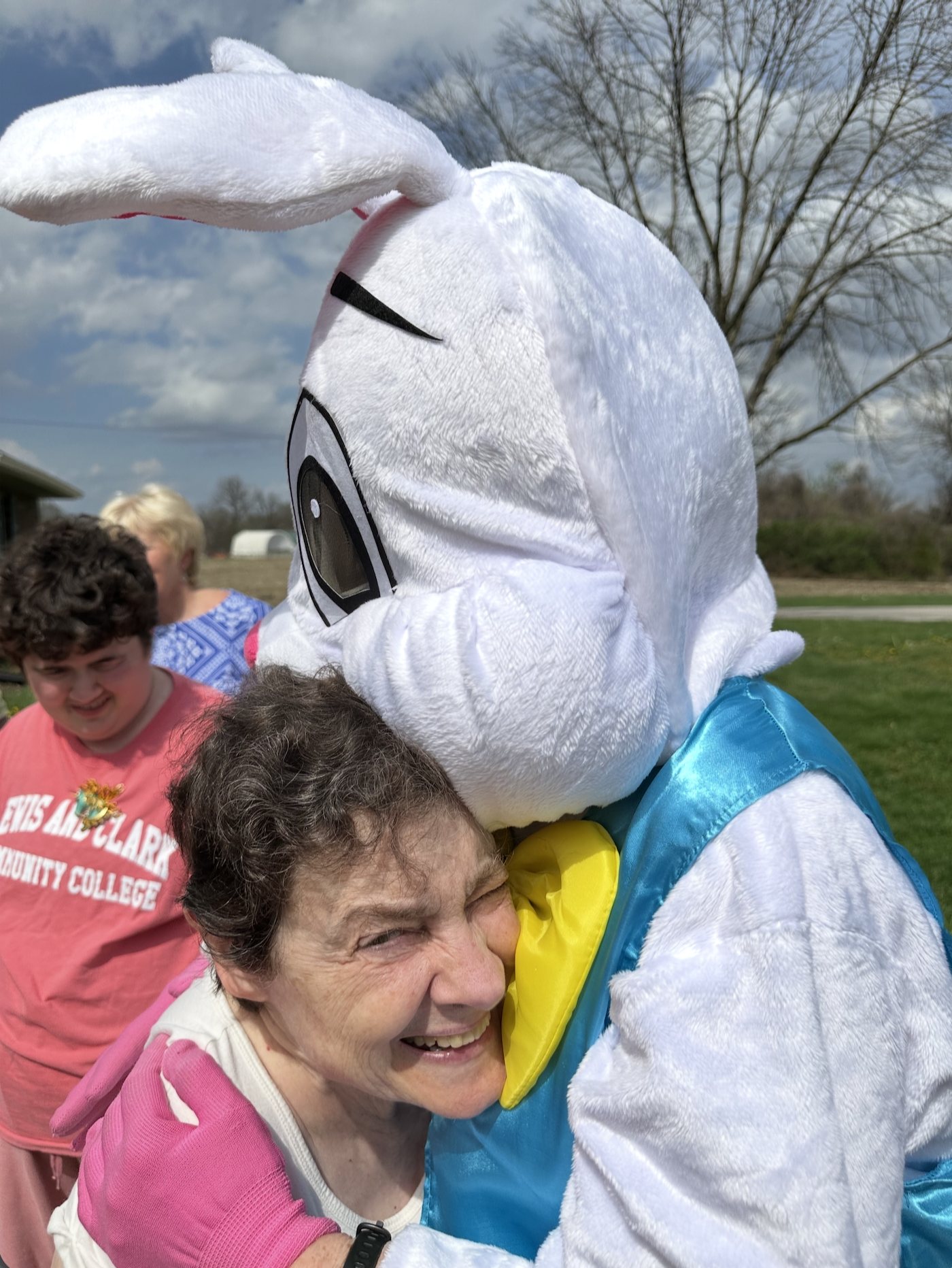 The bunny was played by Godfrey Women’s Club member Susan Marshall, according to information provided by the club. Residents “were very happy to see the Easter Bunny,” and the visit “brought many smiles and laughter.”