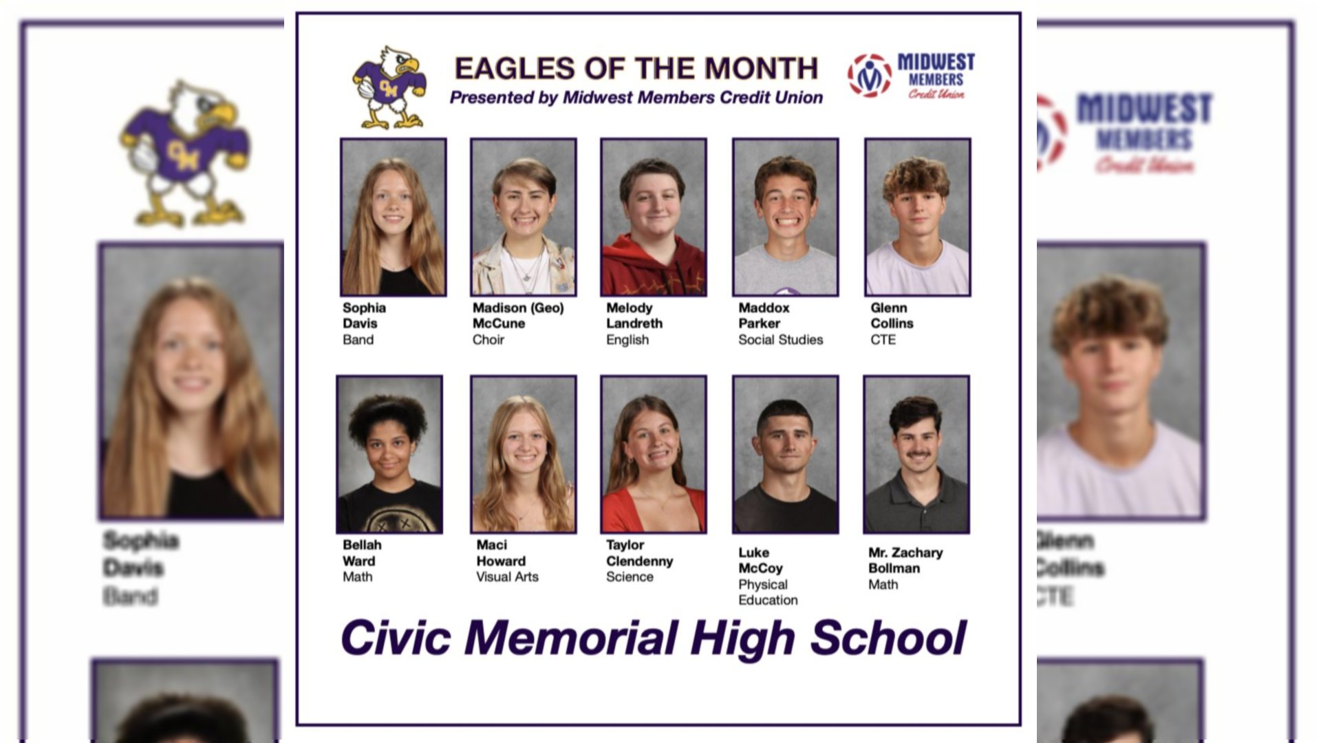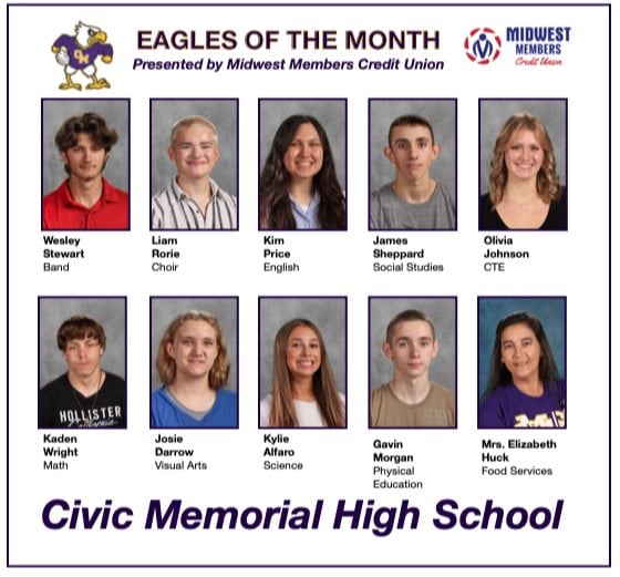 Congratulations to all the Civic Memorial “Eagles of the Month” and the “Teacher of the Month!” We all here at Midwest Members Credit Union wish you well in your future endeavors!