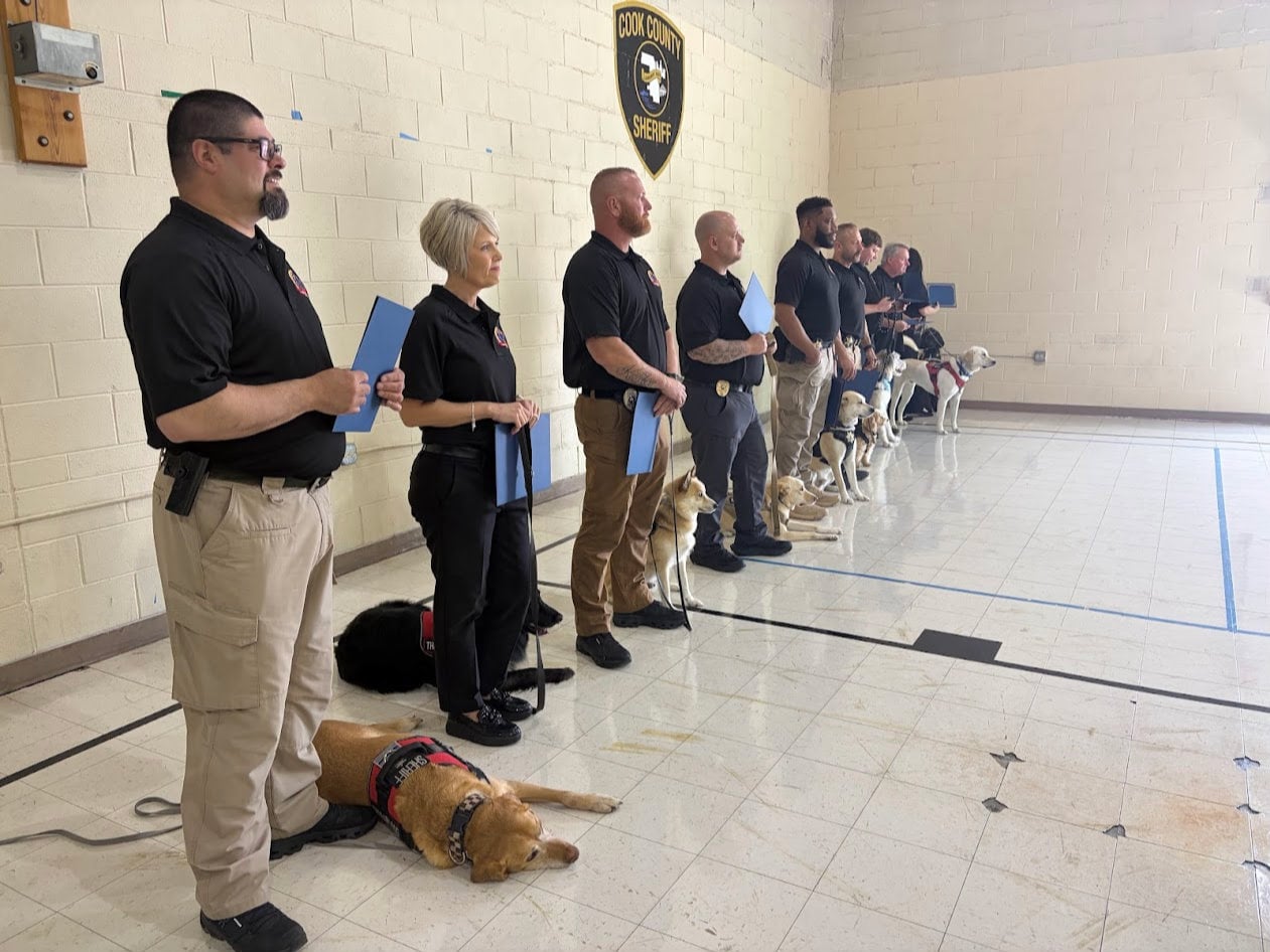 CHICAGO — Today, the Illinois Law Enforcement Training and Standards Board (ILETSB), in partnership with the Cook County Sheriff’s Office (CCSO), marked a historic milestone with the graduation of the inaugural cohort of the nation’s first Crisis Response Therapy Canine Certification Program. The inaugural class features 11 certified therapy canine teams representing seven agencies across Illinois.
