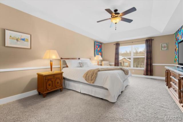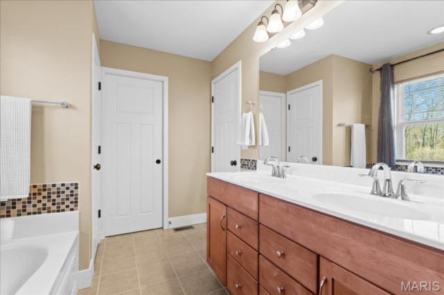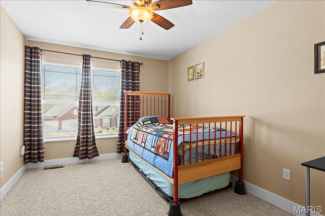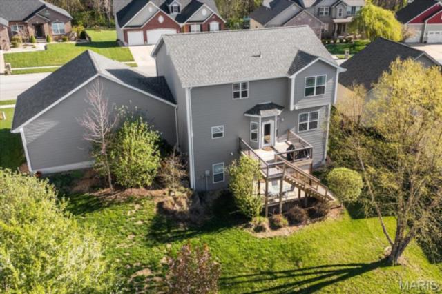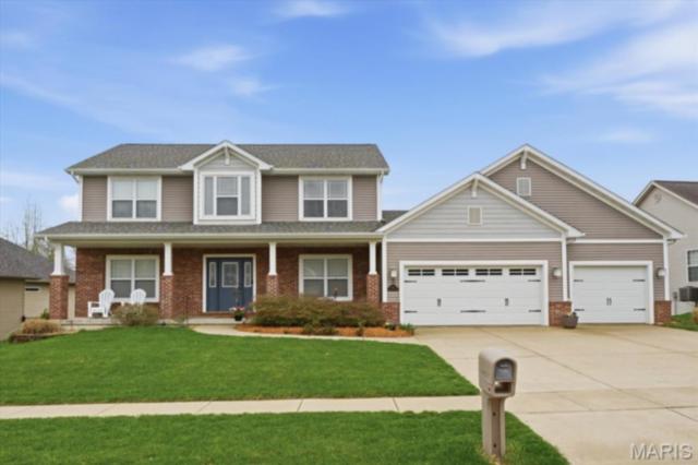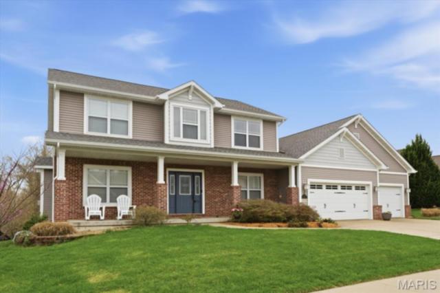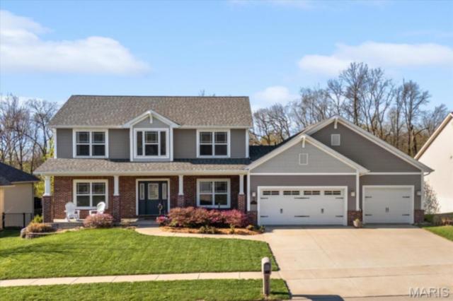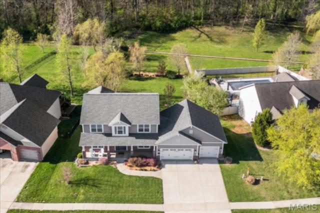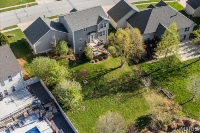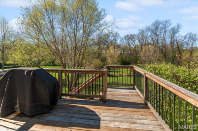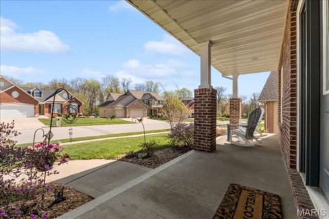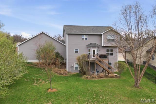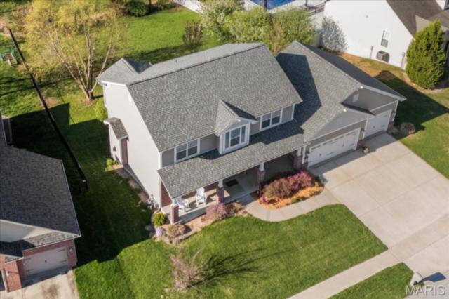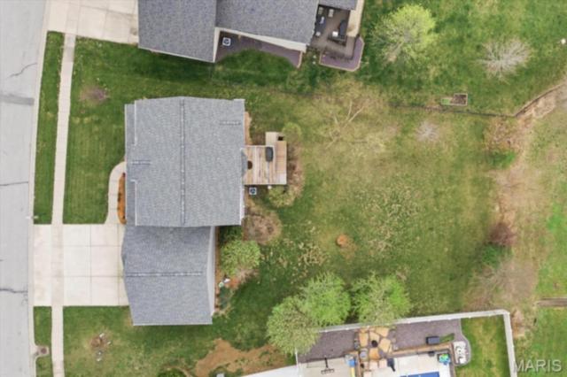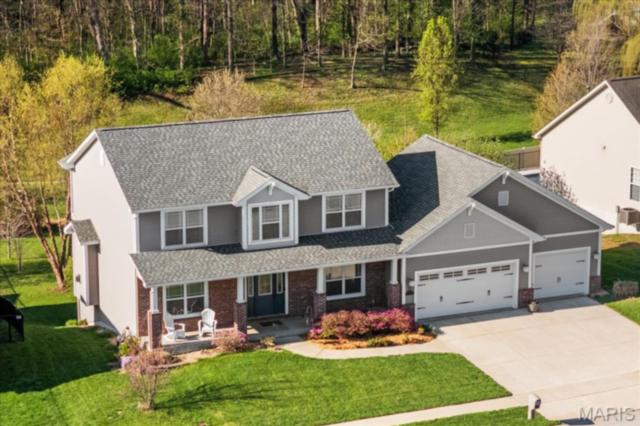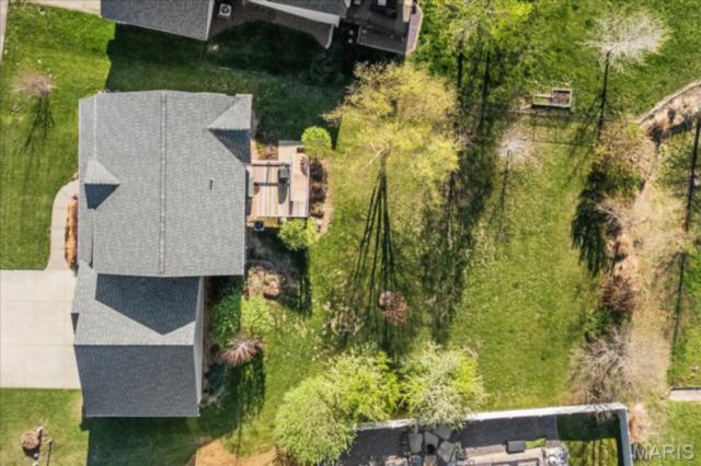 Private 1/2-Acre Wooded Retreat in Huntington Chase Neighborhood located in O'Fallon, Illinois. Experience unparalleled privacy situated on a premium, tree-lined 1/2-acre walkout lot, this exceptionally maintained home backs directly to pristine wooded green space, meaning zero backyard neighbors. Welcome guests from the inviting full-length front porch into a bright, open floor plan bathed in natural light. The heart of the home is an open-concept kitchen designed for both function and style, featuring tall soft shut cabinetry with crown molding, a pantry, and a sprawling center island with ample prep space. The breakfast area flows seamlessly with access to the rear deck with stairs leading down to your secluded backyard. Entertain effortlessly in the adjoining/ open family room, complete with a cozy fireplace and built-in media speakers, or utilize the flexible front living room as a dedicated home office. Gorgeous, meticulously cared-for real hardwood floors extend through the main level, which also boasts a formal dining room and a massive 34x25 oversized three-car garage. Second level: four well sized bedrooms, including a spacious primary suite accented by a tray ceiling. The primary ensuite bath offers adult-height double vanity, separate soaking tub and shower, large linen closet, and an expansive walk-in closet. Three additional guest bedrooms ample closet space and are conveniently located to the full hall bath. A convenient second-floor laundry room and hall linen complete the second level. The deep 9-foot pour, walkout lower level offers endless potential. Already featuring a professionally sprayed exposed ceiling (in the "main" area) for an inviting, semi-finished feel, it’s perfectly primed for a future 5th bedroom, bathroom, and family room. Recent seller updates provide total peace of mind: a newer roof, siding, gutters, and water heater, plus radon mitigation and security systems. One owner home, pet free since construction. Located just minutes from I-64, parks, shopping, and Scott Air Force Base, this quality-built home secures top-tier O'Fallon K-12 education (District 90 and OTHS).