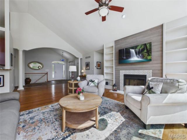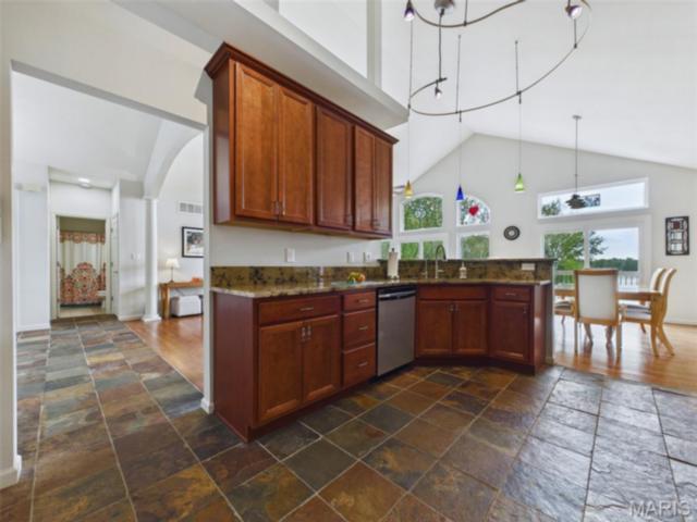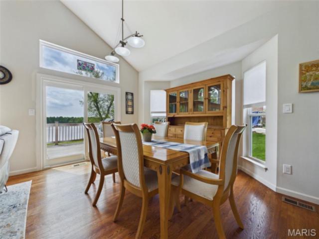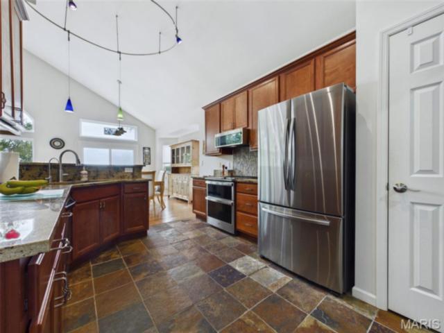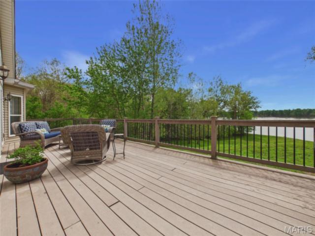 Nothing to do but move right in! This stunning stand-alone villa offers breathtaking river views and nearly 3,000 square feet of finished living space. Designed with an open floor plan, the home features a dramatic wall of windows that perfectly frames the scenic backdrop. The living room is anchored by a beautiful dual-sided fireplace and complemented by rich hardwood flooring, creating a warm yet sophisticated atmosphere. Brand new sliding doors span the entire back of the home, providing seamless access to a spacious deck—ideal for relaxing or entertaining while taking in the view. The kitchen is both stylish and functional, featuring granite countertops, stainless steel appliances, a pantry, breakfast bar, and slate tile flooring. All appliances are included, making your move even easier. Wake up to river views in the serene primary suite, complete with private deck access, a large ensuite bathroom with soaking tub and separate shower, linen closet, and a generous walk-in closet. The finished lower level offers incredible versatility with ample entertaining space, a second kitchen, and a third bedroom with a full bathroom—perfect for guests or multi-generational living. Step outside to a fenced area ideal for pets, accessible from the lower level. Additional highlights include a two-car attached garage and low-maintenance living, with the association covering lawn care, landscaping, snow removal, and roofing. Conveniently located just across the Golden Eagle Ferry from St. Charles or via the Brussels Ferry from Grafton, this home offers a peaceful retreat with easy access to surrounding areas. Residents also have the option to enjoy the subdivision clubhouse and pool for an additional annual fee. Make your appointment today!