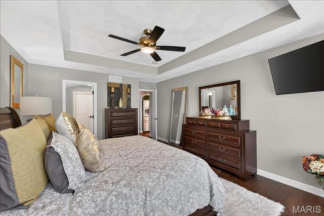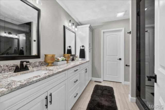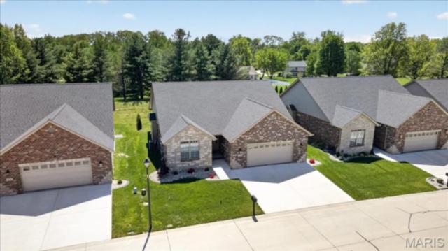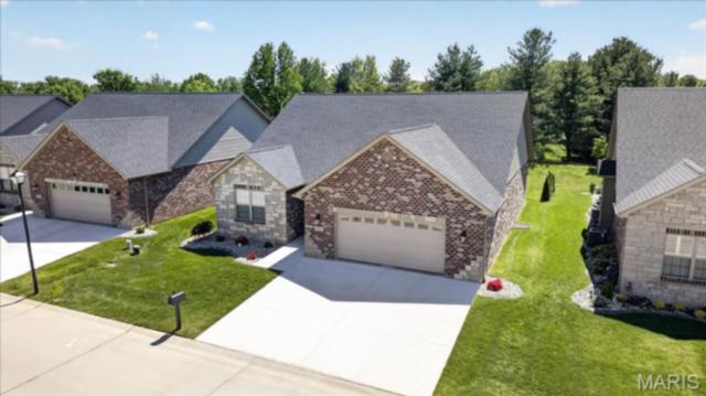 Discover effortless living in this Executive detached villa with high-end custom finishes in the highly sought-after Villas at Ravenel, a gated community in Swansea, IL. Striking brick-and-stone facade on 3 sides, additional professional landscaping added for privacy and dedicated irrigation set the tone. Step inside to find an inviting open concept layout featuring 9' ceilings, durable engineered wood flooring, cased windows with custom blinds, and a dramatic vaulted living room centered by a gas fireplace w/marble surround and wood mantle and elegant iron-spindle staircase. Chef’s-caliber kitchen starting with an over-sized granite kitchen island (identical granite throughout the home on all vanities), upgraded white cabinets with soft close & crown molding, beautiful tile backsplash, and premium built-in appliances opens to a bright dining room with doors that lead to an exceptional lanai fully screened and chilling fan makes this an ideal space for indoor-outdoor entertaining throughout the year. Sophisticated Private primary suite boasts tray ceiling, bay window and a luxurious spa-like ensuite thoughtfully built for longevity with ADA toilets and stylish, extra large tile walk-in shower w/handheld and rain shower head, dual vanity and walk-in closet complete with organization. And just when you think you have seen it all, Make your way to lower level to where you will find the large family room with wet bar that is perfect for relaxing or entertaining guests. Complete with 2 egress windows, 3rd bedroom, full bath and plenty of unfinished space for all your storage needs as well as a walk-in cedar closet. Oversized 24' x 25' garage with 8' doors completes this impeccably finished Villa! Low-maintenance- monthly fee covers lawn mowing, landscaping maintenance, and snow removal, allowing you more time to enjoy life. Don’t miss this opportunity to own this spectacular villa in one of Swansea’s most desirable communities!