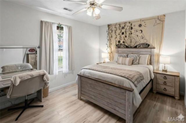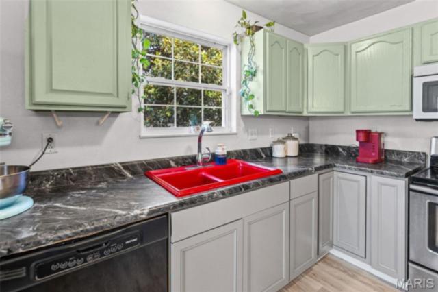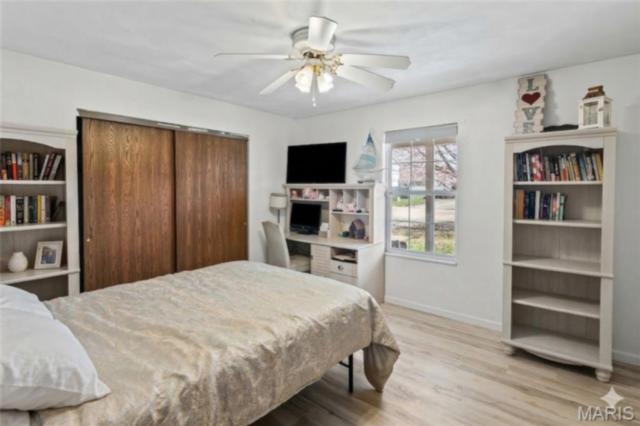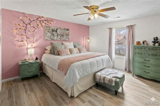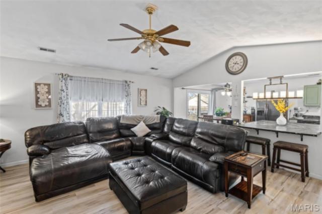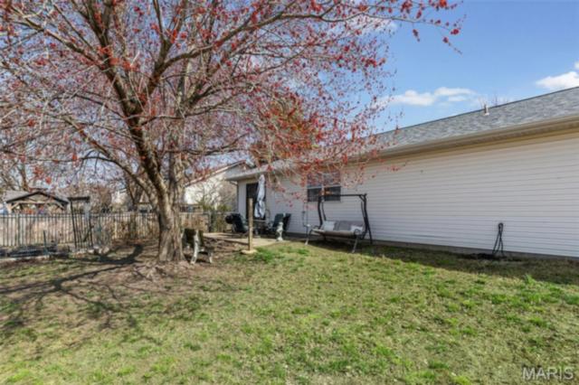 Stylish updates, soaring ceilings, and a backyard designed for relaxing make this beautifully maintained ranch truly inviting. This 3-bedroom, 2-bath ranch offers comfort, thoughtful design, and attractive finishes throughout. The brick and vinyl exterior welcomes you with a charming covered front porch, perfect for enjoying the peaceful neighborhood, along with a 2-car attached garage featuring a newly coated floor for a clean, polished look. Inside, an inviting open floor plan immediately creates a sense of space and warmth. The expansive kitchen and dining area serve as the heart of the home, showcasing a stylish blend of sage and neutral cabinetry, high-contrast countertops, and a large center island with breakfast bar seating. Distinctive design details, including a leaf-blade ceiling fan and sleek linear lighting, add character and a modern touch. The primary suite provides a comfortable retreat with a designer dusty rose accent wall and luxury vinyl plank flooring that flows throughout the home. The bright ensuite bathroom connects to a versatile bonus room, ideal for a dressing space, nursery, or home office. Both bathrooms feature updated finishes that complement the home's modern style. Step outside to a fully fenced backyard offering a private outdoor escape. A large concrete patio is perfect for summer gatherings beneath a mature shade tree, while garden beds and generous green space allow plenty of room for hobbies, gardening, or play. Additional highlights include an Avalon Water System (included as-is), a recently replaced roof (2024), regularly serviced furnace with new heating element and flooring updated in 2024 . The HVAC system and water heater were previously replaced, and kitchen appliances are included. Conveniently located near Scott Air Force Base, with easy access to local dining, shopping, and the interstate. School District: Whiteside School District & Belleville East High School.