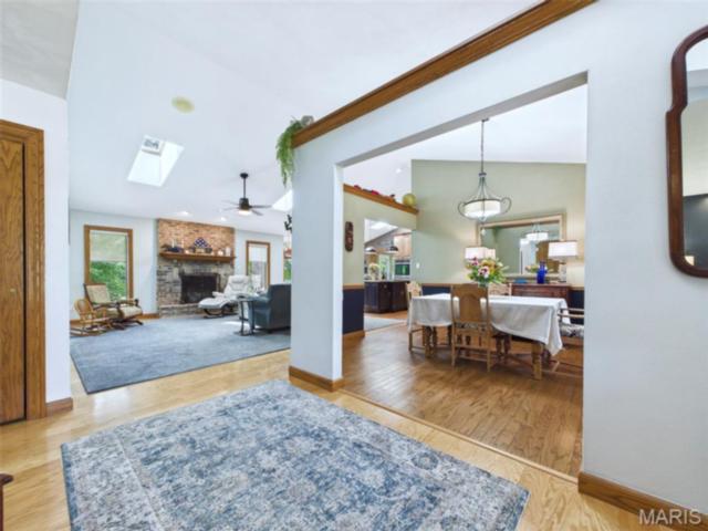 Quality construction, space, and gorgeous views all wrapped in one package. This spacious ranch home on the golf course sits on .41 acres and features a sunroom as well as a covered deck to soak up the views. When you step in the front door the first thing that catches your eye is the hardwood floors, follow those beautiful wood floors into the living room, the oversized formal dining room, the family room featuring a vent free gas fireplace to keep things cozy on the cooler nights, then right into the open kitchen and breakfast room. Right off the kitchen you'll find the laundry room on one side and the sunroom (currently set up as an office) on the other. The well appointed kitchen includes custom cabinets with all the bells and whistles, granite counters and built in appliances. The breakfast room looks out over the golf course as does the island when you're preparing meals or entertaining friends. Down the hall you'll find 3 spacious bedrooms. The primary suite offers a slipper tub and separate shower, double vanity and a walk in closet. The other 2 bedrooms share another full bath with a walk in shower. Back on the other side of the house off the laundry room is the 3rd full bath, convenient for anyone coming in from the garage or back yard. The entire home is full of light thanks to a total of 7 skylights, 4 traditional skylights and 3 solatube style. Lawn is kept beautiful with a 7 zone sprinkler system and landscape lighting. Backyard is fenced to keep your fur babies safe. The attached 3 car garage has 2 closets increasing the functionality and providing lots of additional storage. Many more features we don't have enough room to list. Don't wait, book your showing with your favorite agent today. Property to be available for showings on 4-30-26. Open houses on 5-2-26 and 5-3-26.