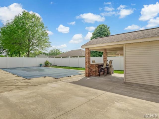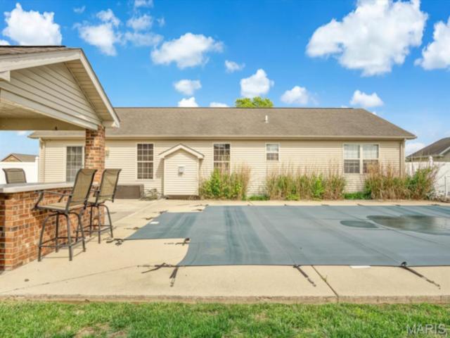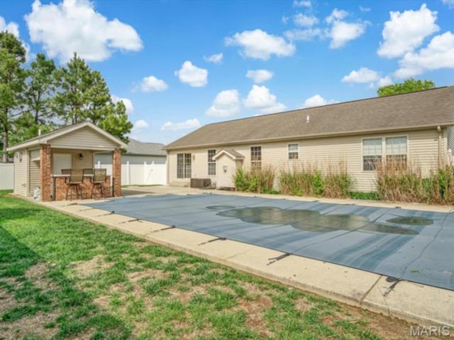 Welcome to this well-maintained home in Red Bud, offering the perfect mix of space, functionality, and a backyard setup you’re going to love! The main level features 3 bedrooms and 2 full bathrooms, with a welcoming foyer that opens into a bright and inviting living room complete with a gas fireplace and windows on both sides that bring in tons of natural light. The space flows right into the breakfast room and kitchen, where you’ll find a center island, plenty of cabinet space, and a pantry, perfect for everyday living and entertaining! Just off the kitchen, the mudroom doubles as a convenient main level laundry space. Two additional bedrooms and a full bathroom are nearby, while the primary suite offers a walk-in closet and an attached bathroom with a walk-in shower. The finished lower level adds even more room to spread out with a large family room, wet bar, half bathroom, and an additional full bathroom with laundry hookups. There is also plenty of unfinished storage space with built-in shelving, giving you all the storage you need! Step outside and get ready for summer! The fully fenced backyard with a privacy fence features an in-ground pool and pool house, creating the perfect space to relax, entertain, and make the most of warm days! Additional updates include a new water heater, and the roof is equipped with durable 40-year shingles for long-term peace of mind. This home truly checks all the boxes with space, layout, and an outdoor setup that stands out!
